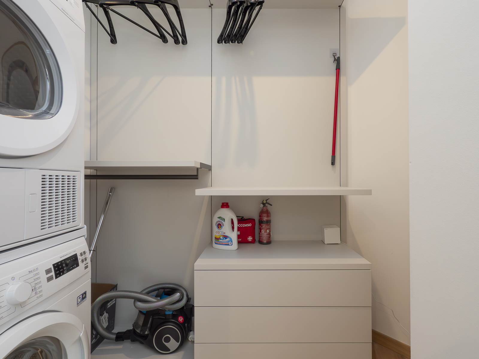 - Zona lavanderia con lavatrice e asciugatrice separati, asse e ferro da stiro