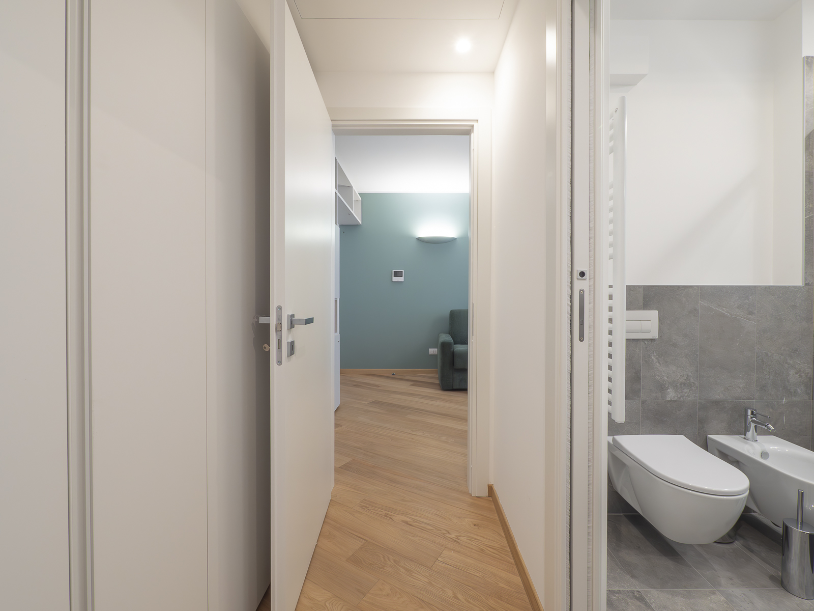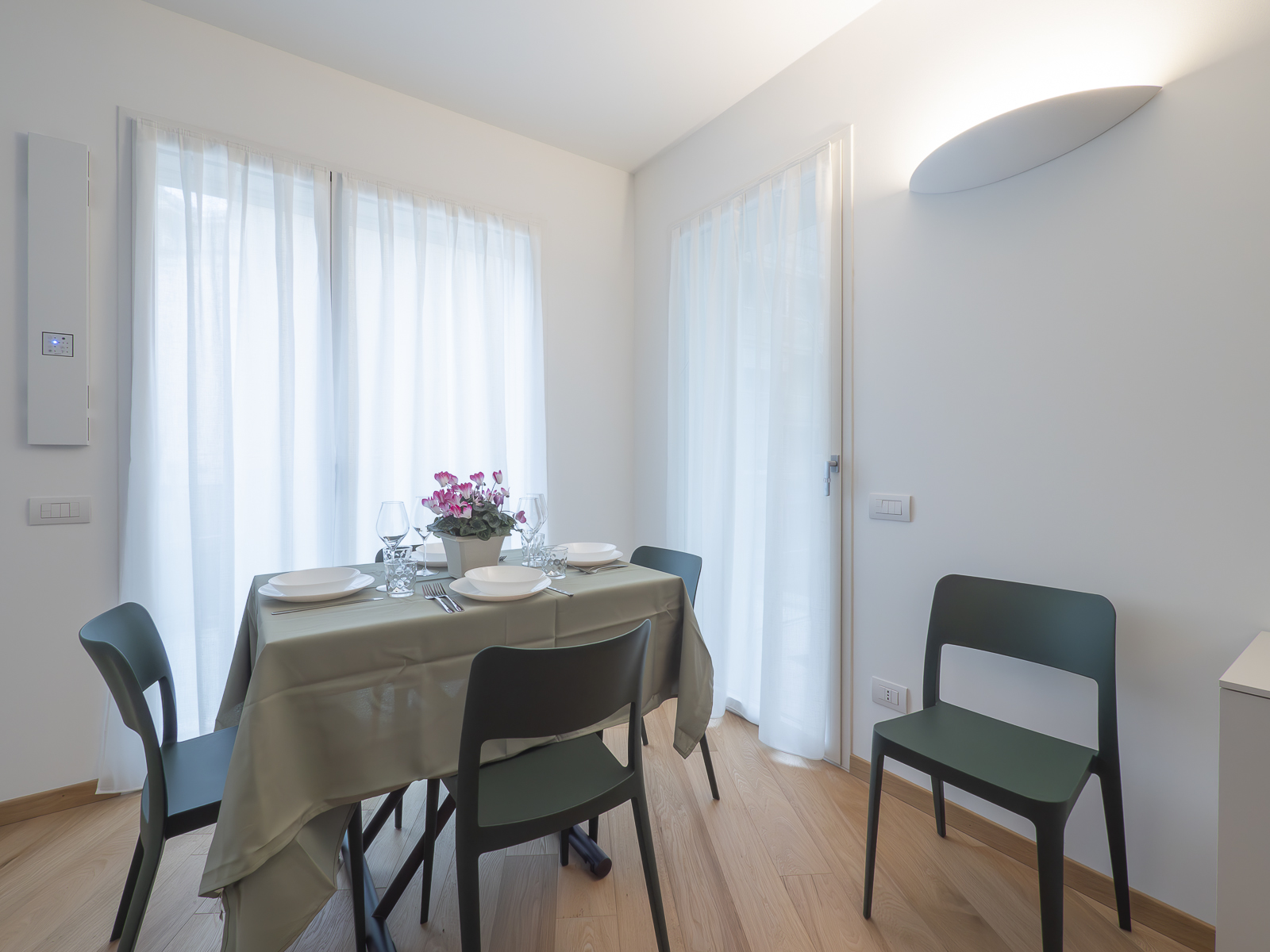 The flat, soundproofed with state-of-the-art technology, offers a refined and quiet environment in the heart of Milan.