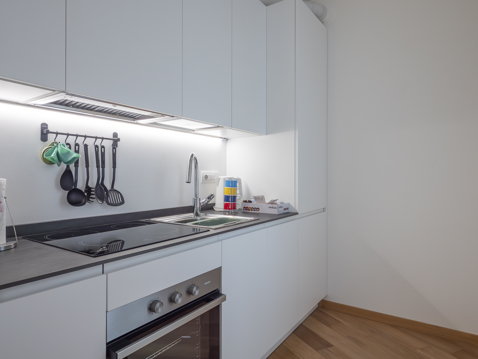 - Fully equipped kitchen with 4-ring induction hob, moka pot, capsule coffee machine, oven with microwave, dishwasher, refrigerator and a complete set of kitchen utensils.